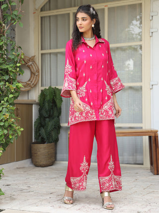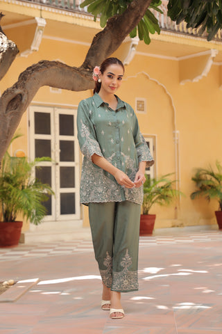 Women Embroidered Shirt with Trousers Co-ord Set