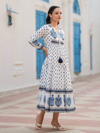 Ethnic Motifs Printed Cotton Fit & Flare Midi Dress