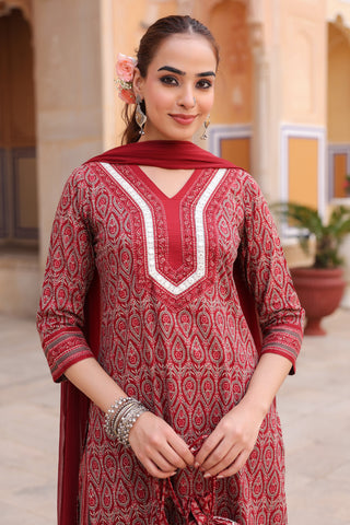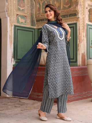 Women Ethnic Printed Regular Pure Cotton Kurta With Trousers & Dupatta