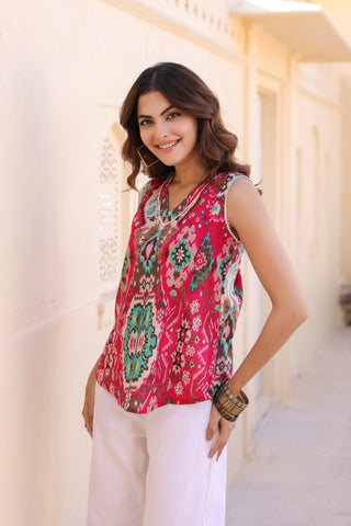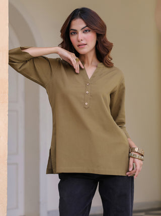 V-Neck Pure Cotton Tunic With Trousers Co-Ords