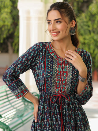 Printed Round Neck Pure Cotton Ethnic Dresses