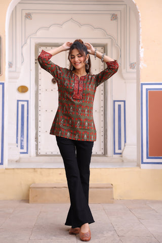 Ethnic Motifs Printed Pure Cotton A-Line Top