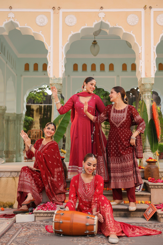 Rich hues, intricate prints, and flowing silhouettes — made to move with every celebration.