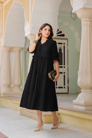 Women Pure Cotton Ruffle-Detail V-Neck Fit & Flare Midi Dress
