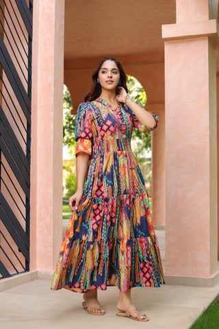 Floral Printed Tiered Ethnic A-Line Dresses