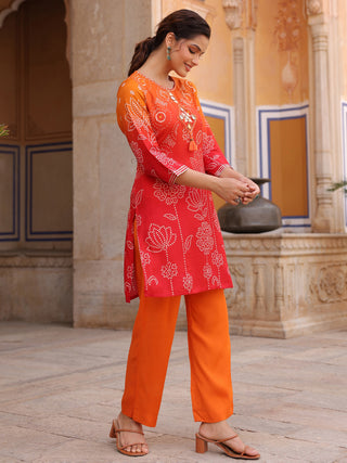 Women Bandhani Printed Tunic with Trousers Co-Ords