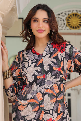 Floral-Printed Cotton Tunic With Trouser Co-Ords