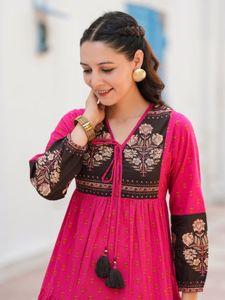 Women Floral Printed Cotton Ethnic Dresses