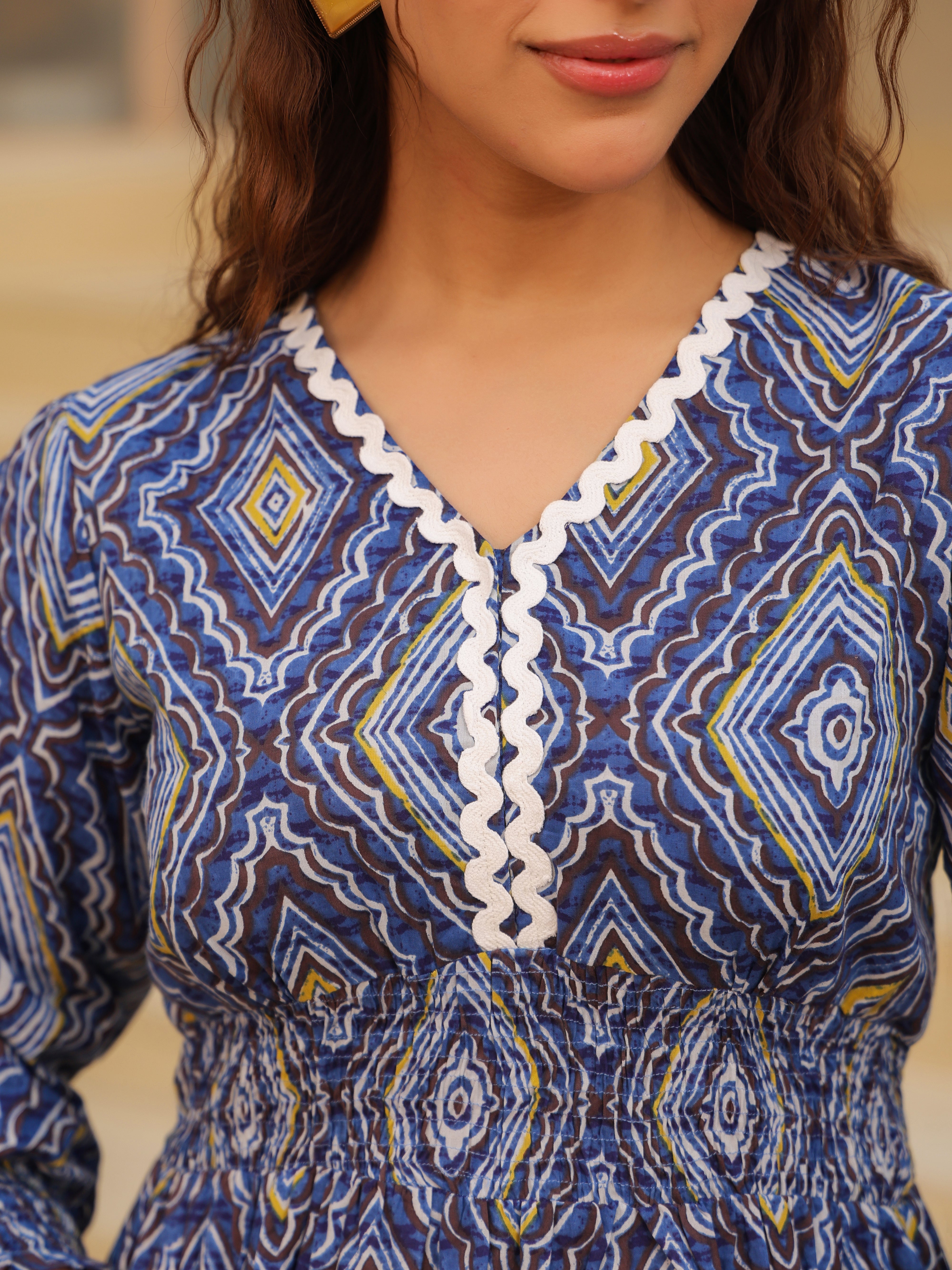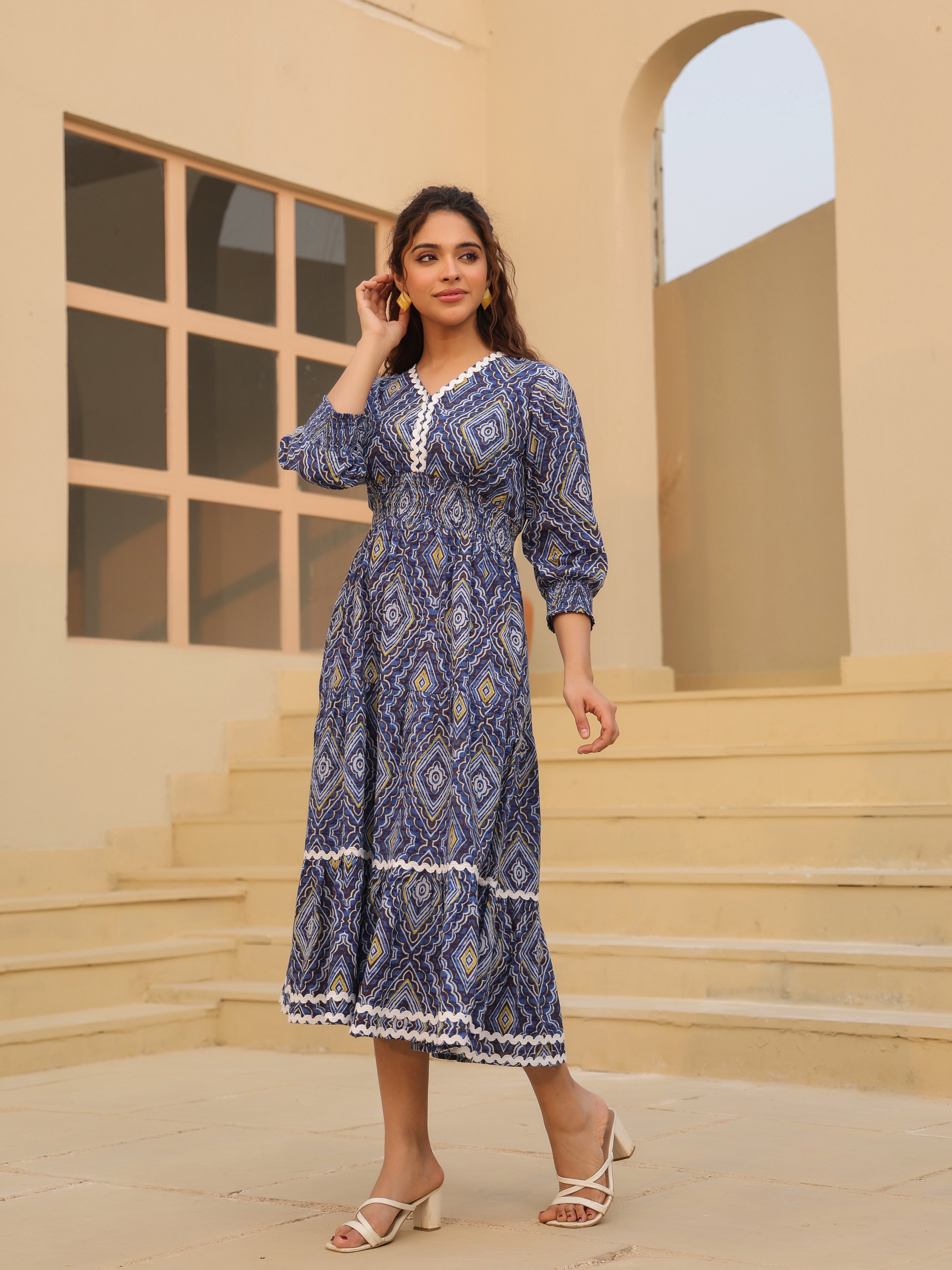 Women Printed Pure Cotton Fit & Flared Ethnic Dress
