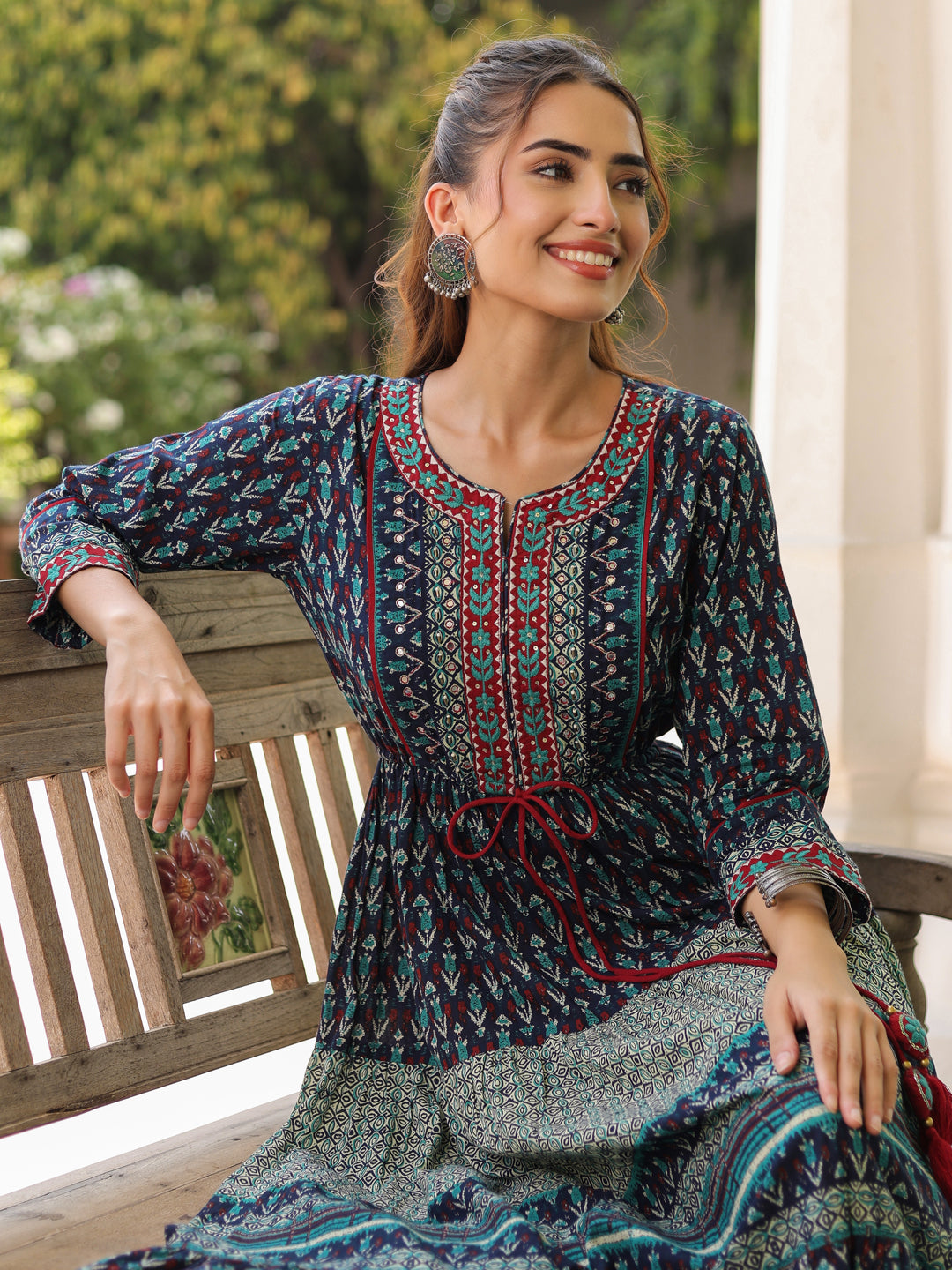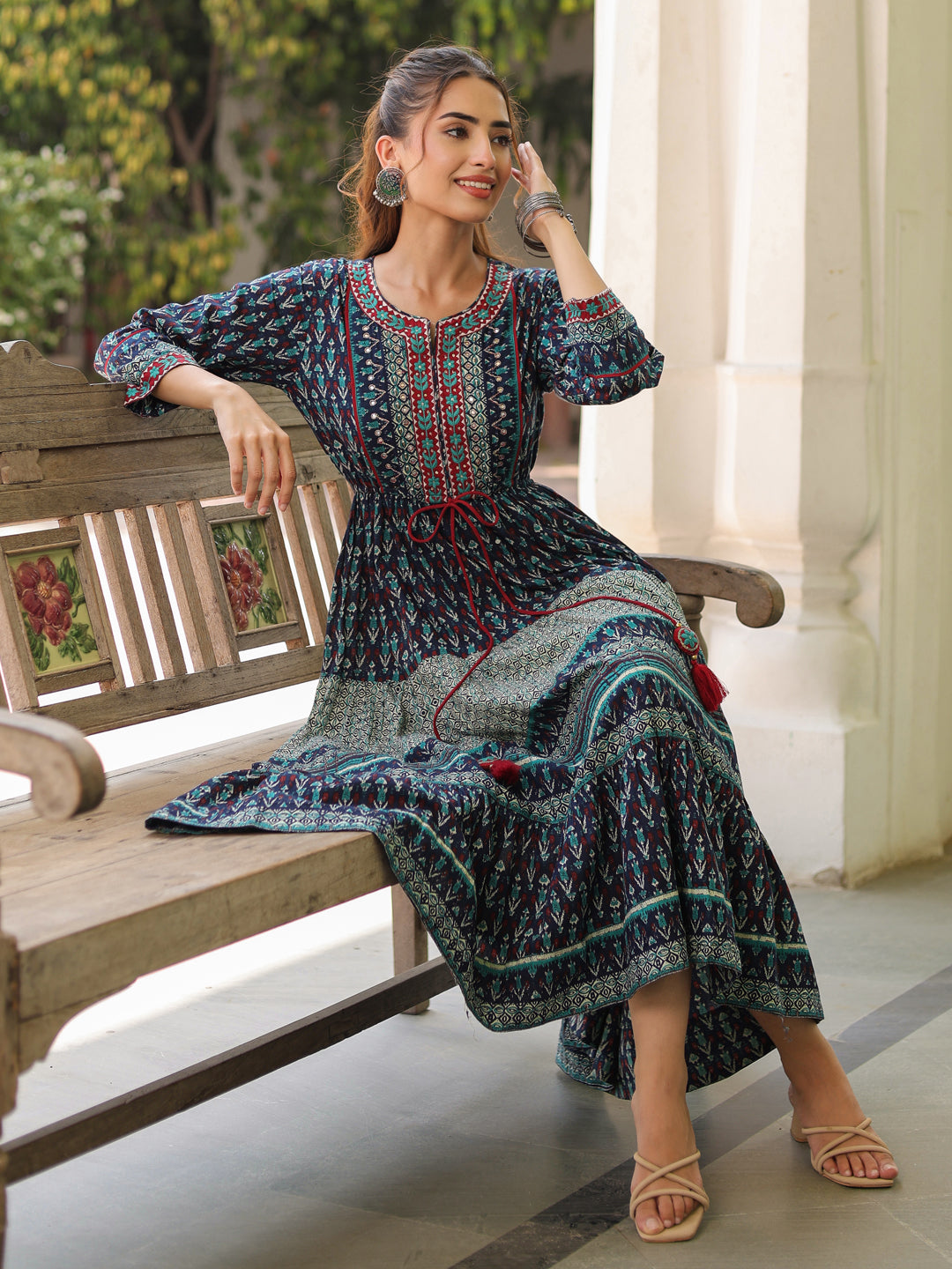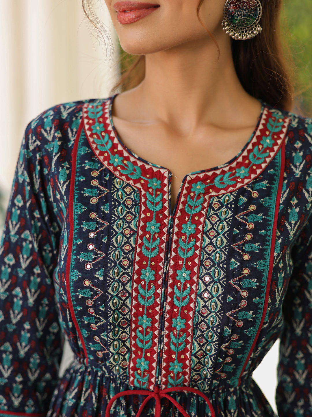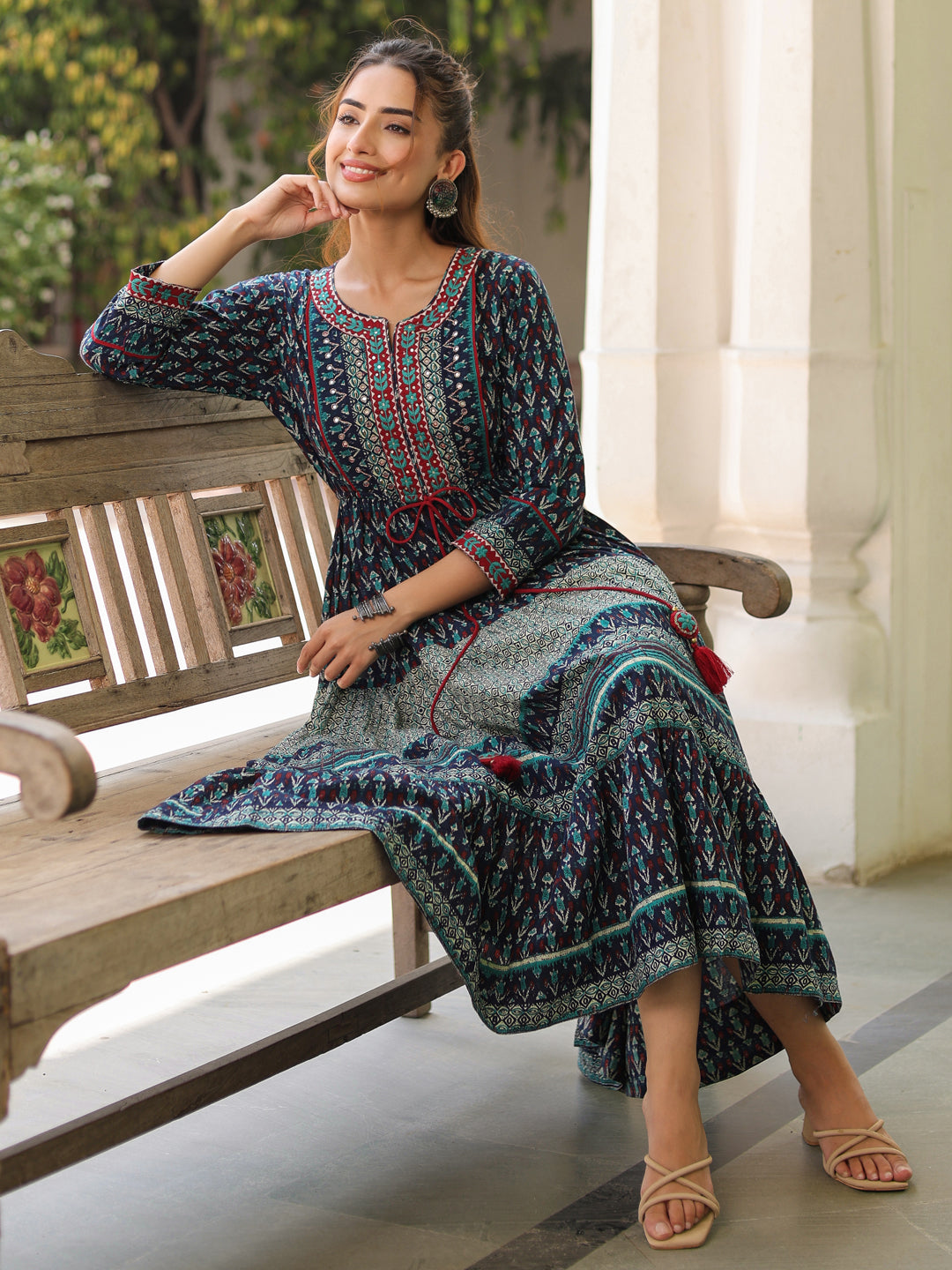 Printed Round Neck Pure Cotton Ethnic Dresses