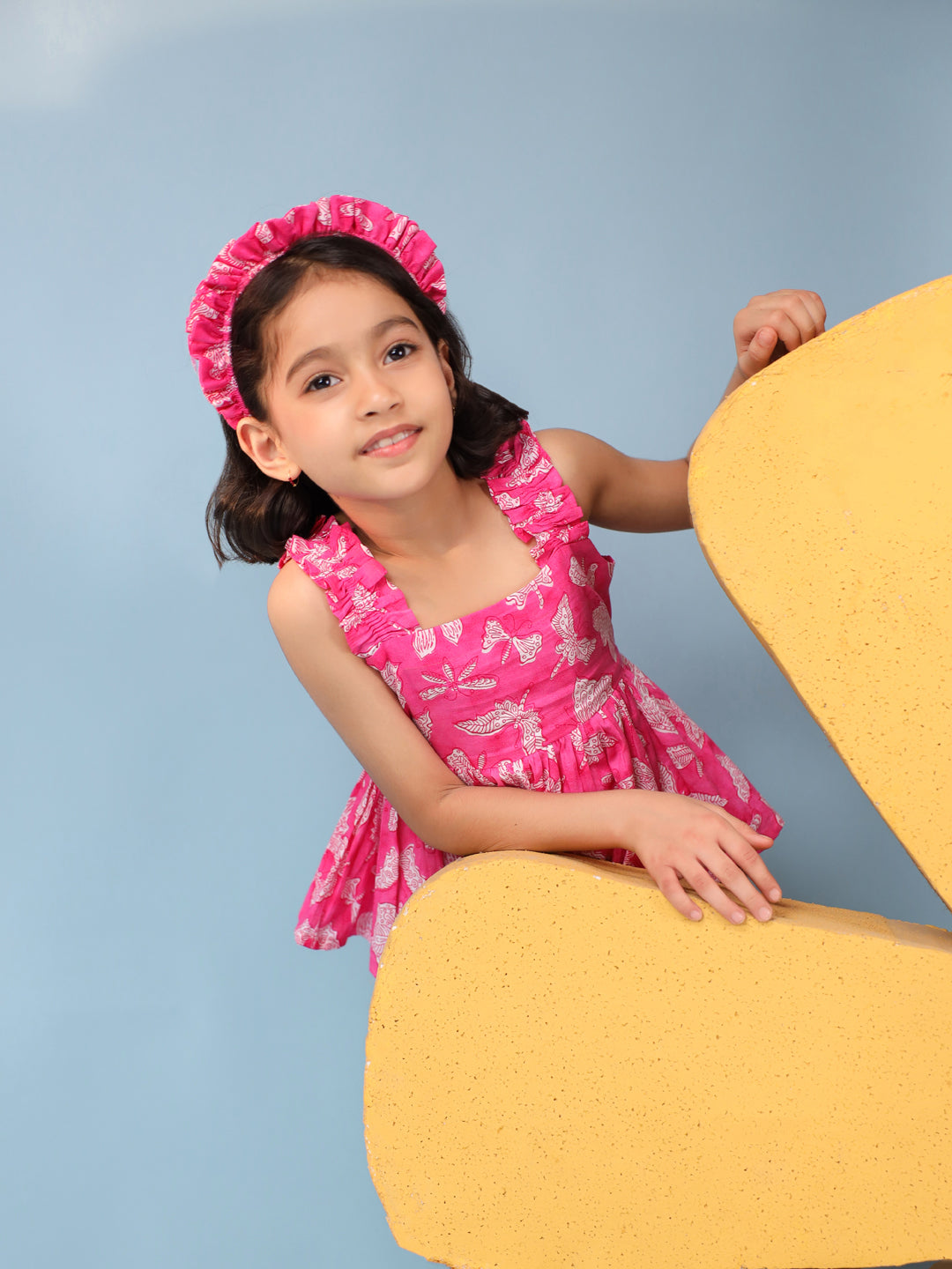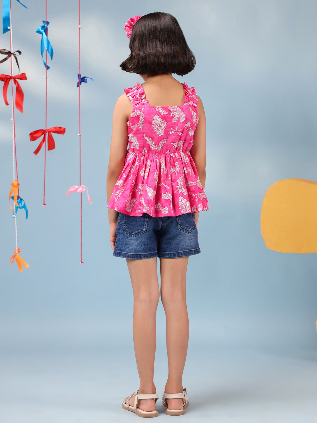 Girls Floral Printed Pure Cotton Peplum Crop Top