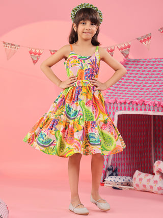 Girls Tropical Printed Sleeveless Cotton Fit and Flare Dress