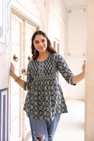 • Women Ethnic Motifs Printed Pure Cotton Top: The perfect blend of tradition and modernity, this top with ethnic motifs is both stylish and comfortable. Wear it with palazzos or a skirt for a complete ethnic ensemble.