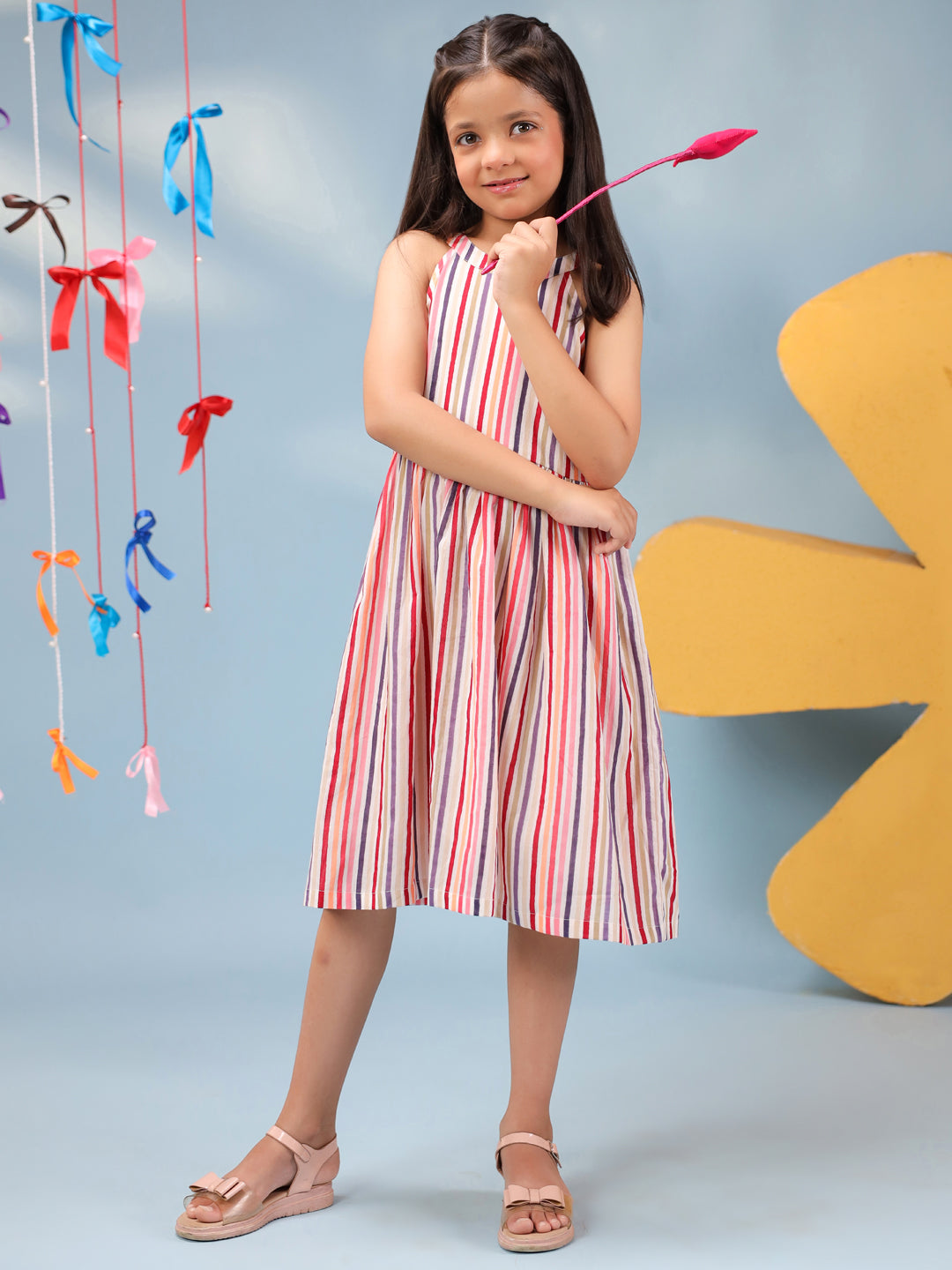 Girls Striped Pure Cotton Fit & Flared Ethnic Dresses