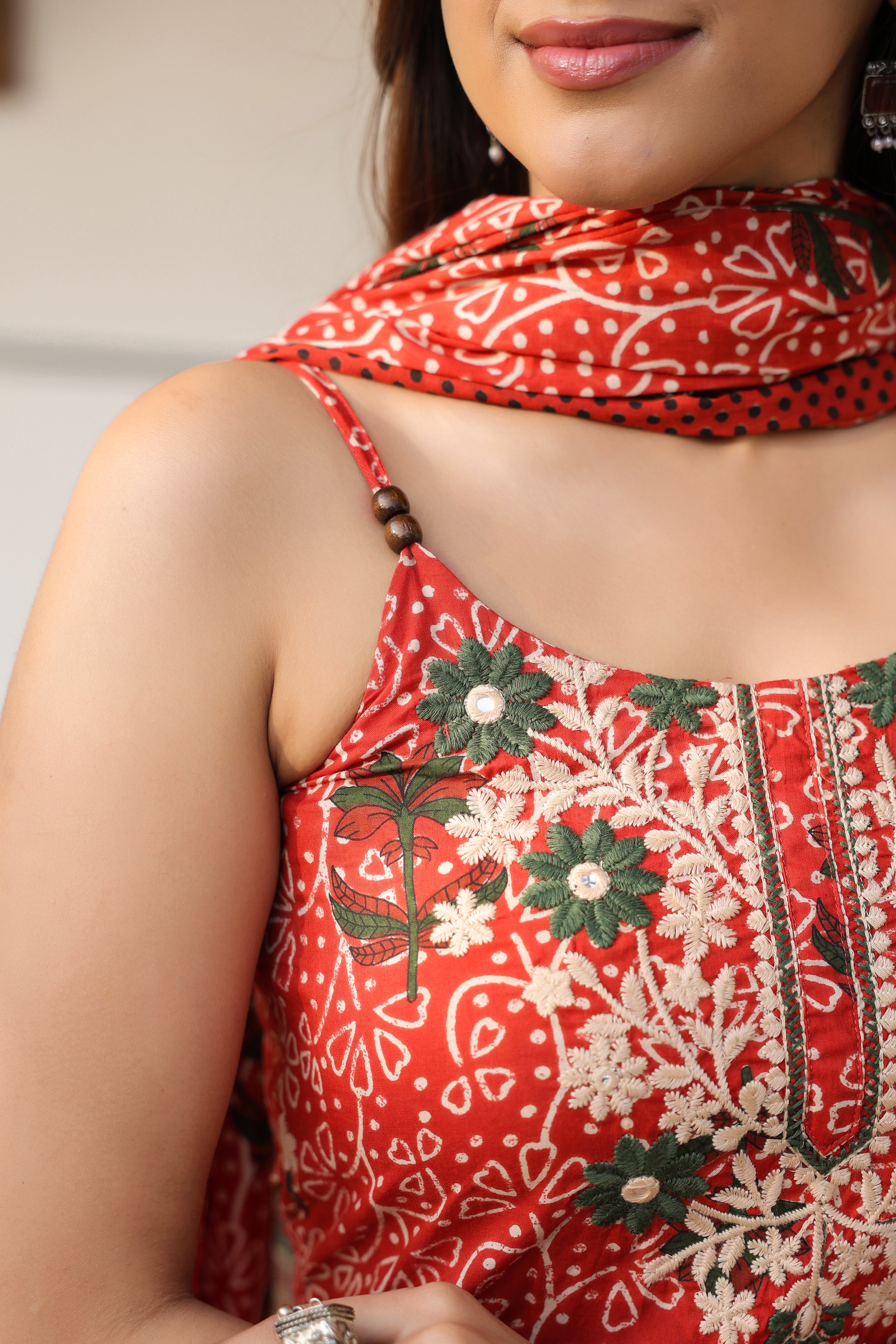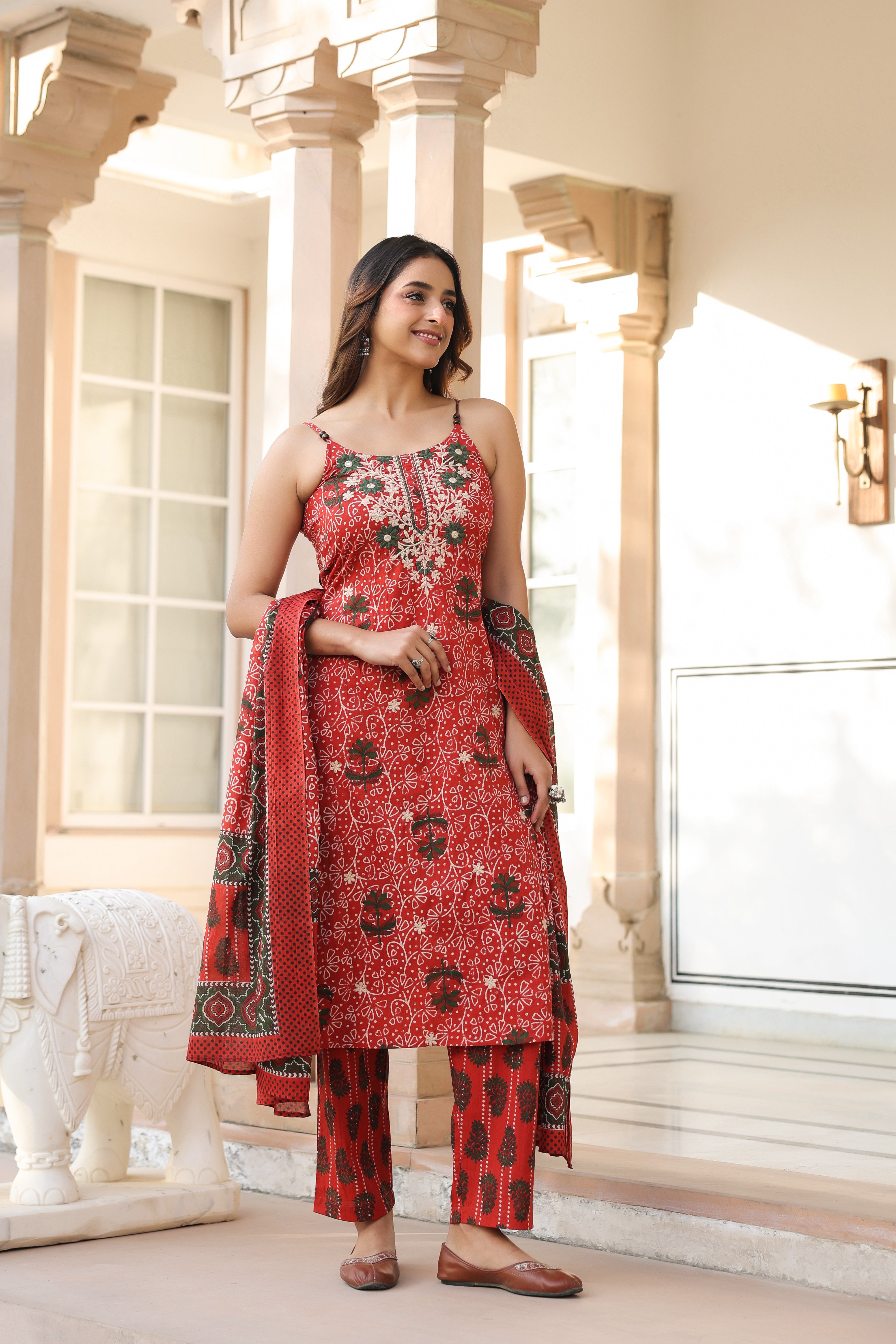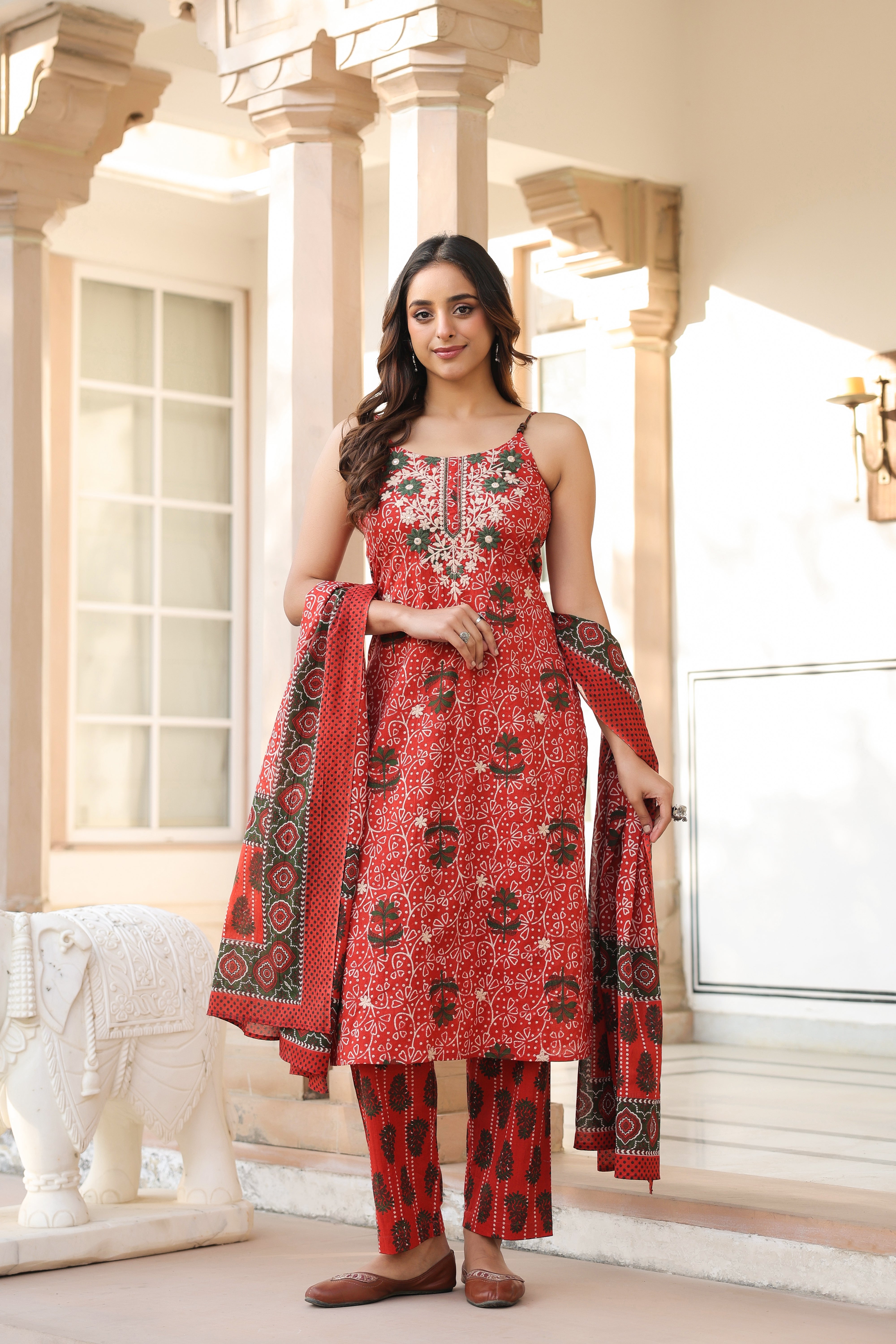 Women Ethnic Motifs Printed Regular Beads and Stones Pure Cotton Kurta with Trousers & With Dupatta