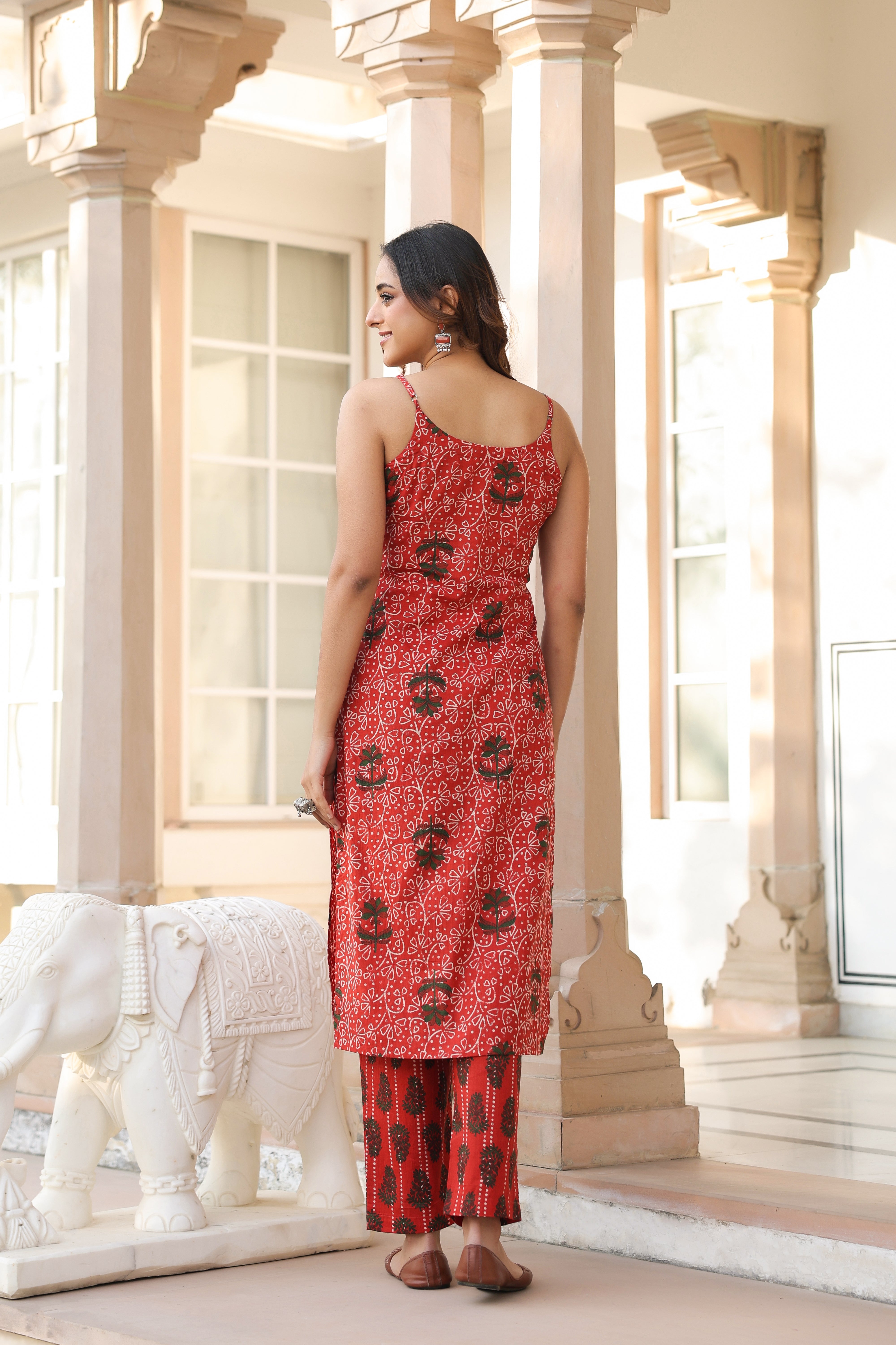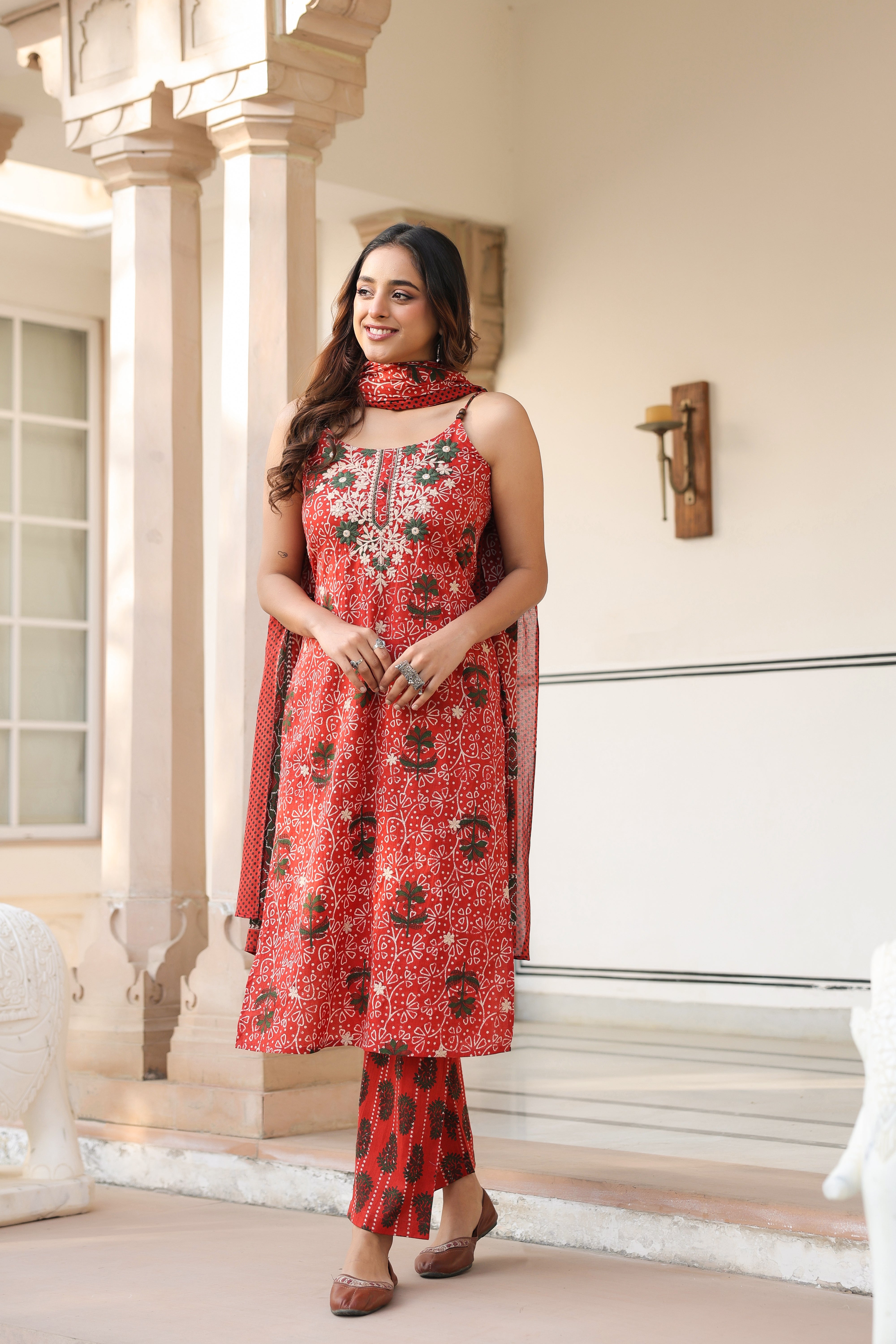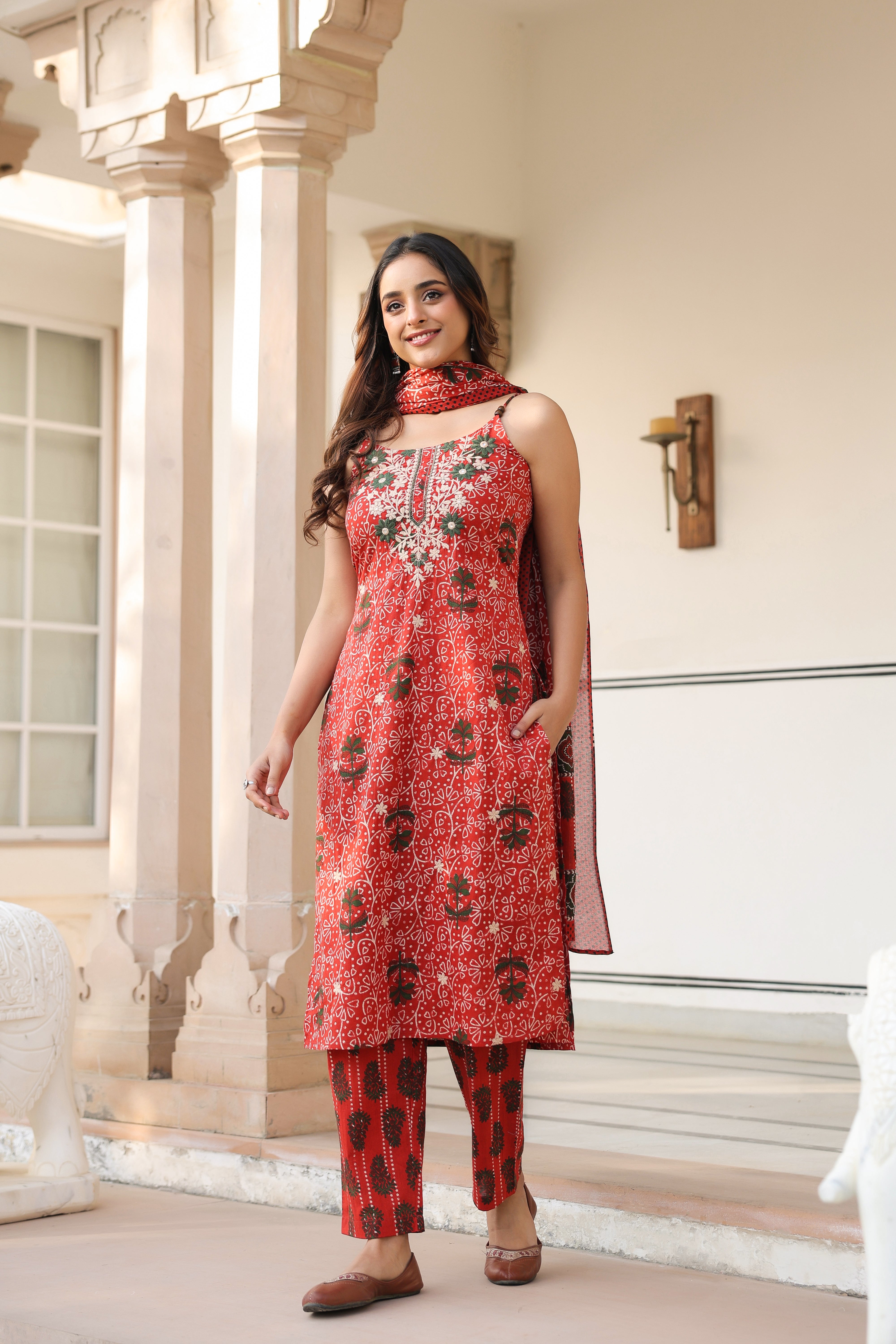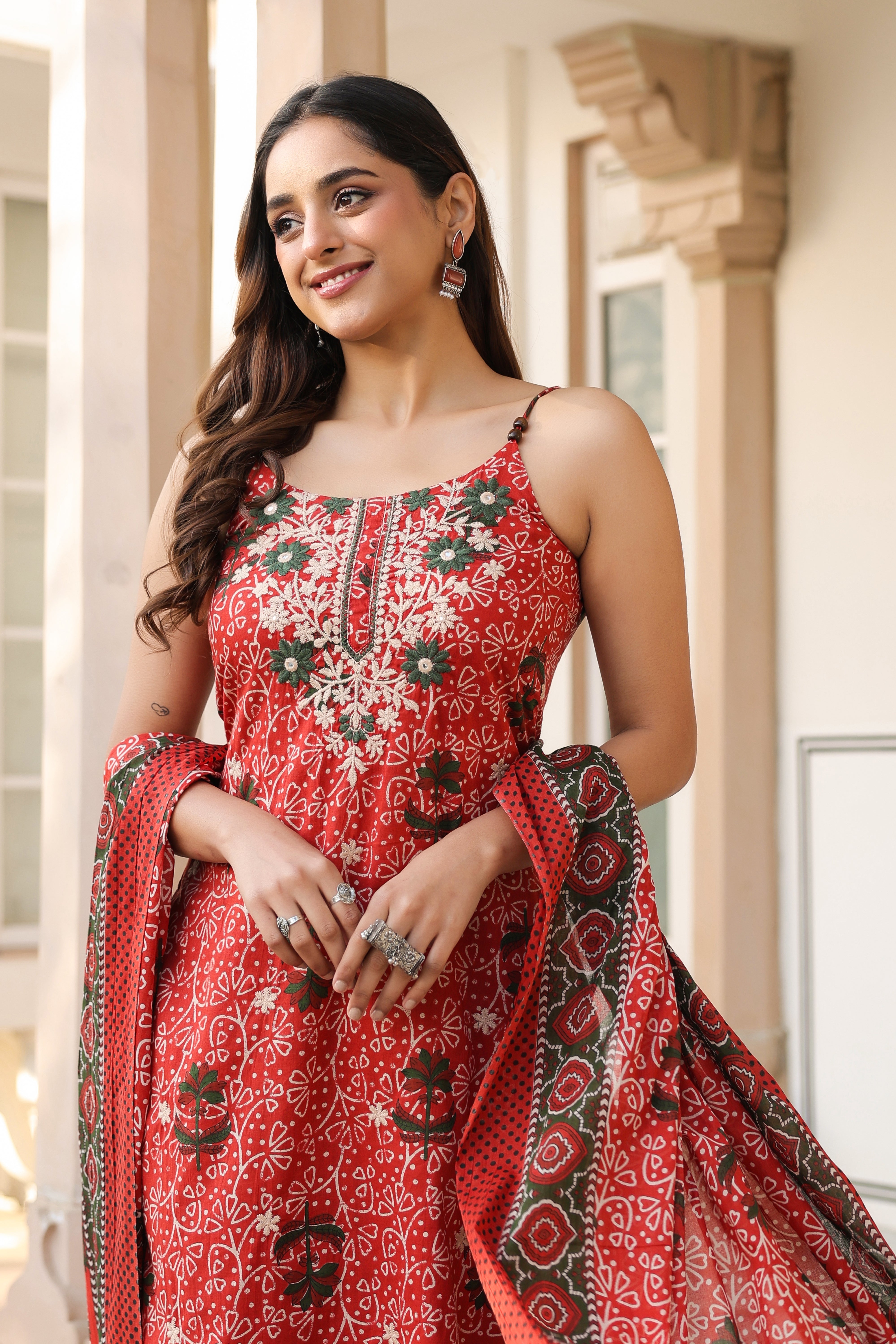 Women Ethnic Motifs Printed Regular Beads and Stones Pure Cotton Kurta with Trousers & With Dupatta