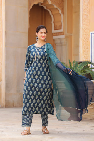 Women Ethnic Motifs Printed Pure Cotton Kurta With Trousers & Dupatta
