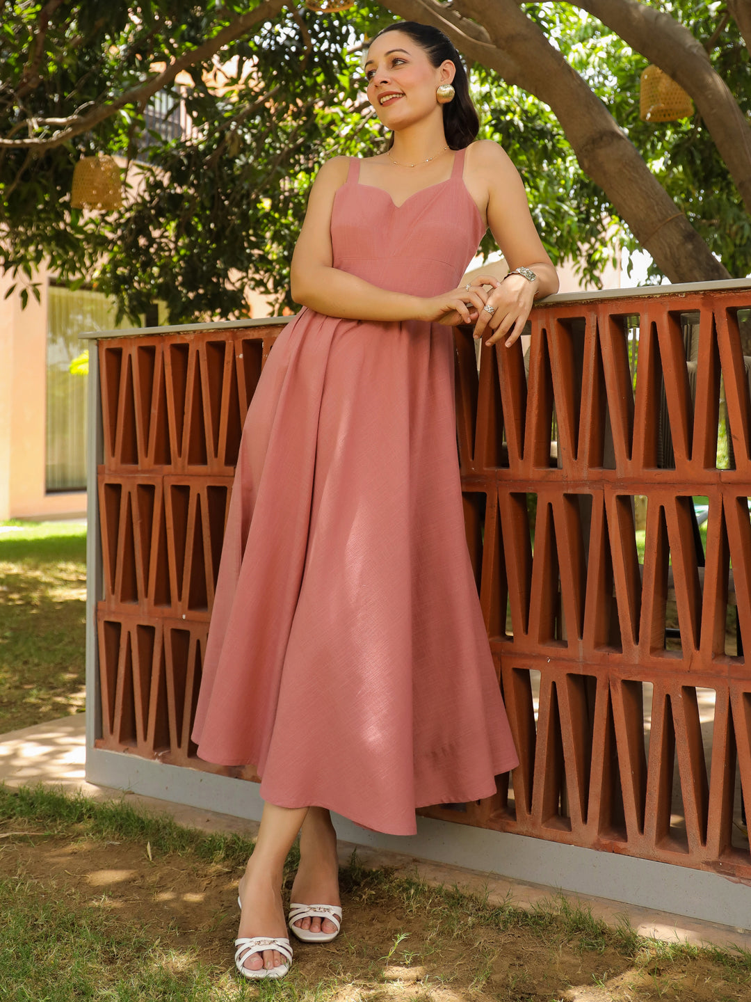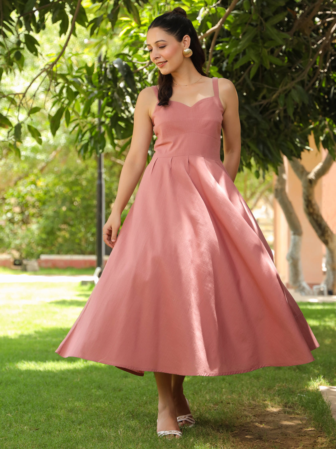 Women Solid Fit and Flare Pure Cotton Midi Dress