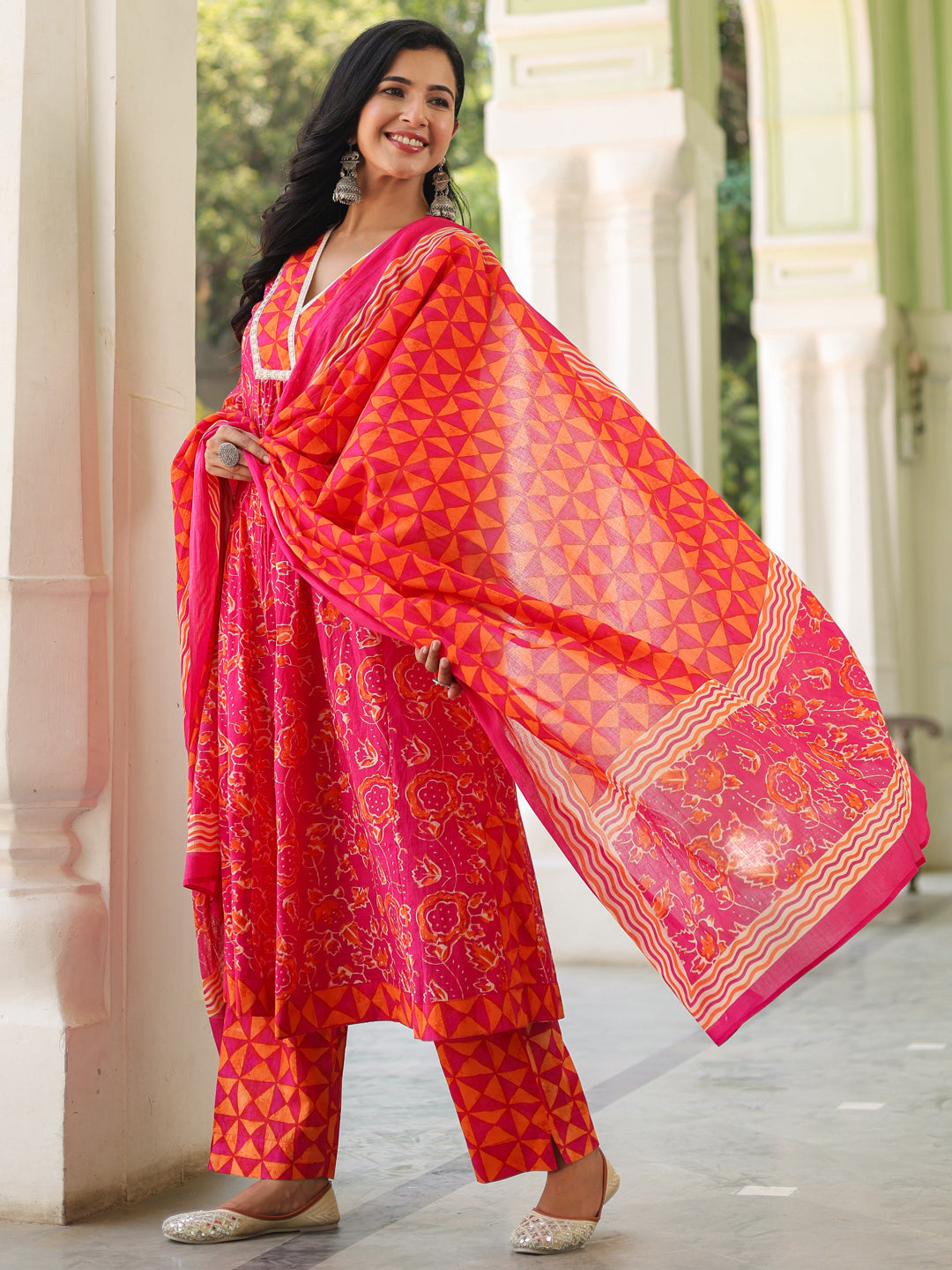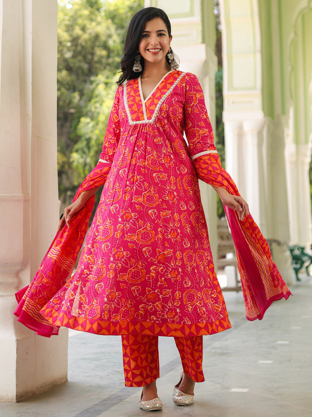 Women Floral Sequinned Pure Cotton Kurta with Trousers & Dupatta