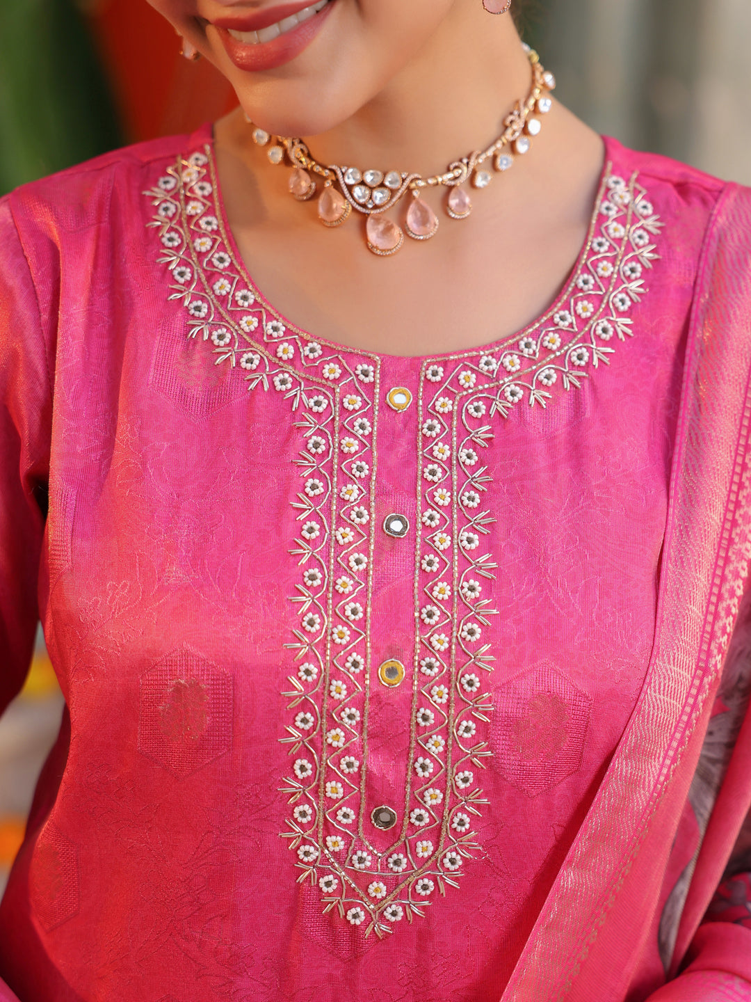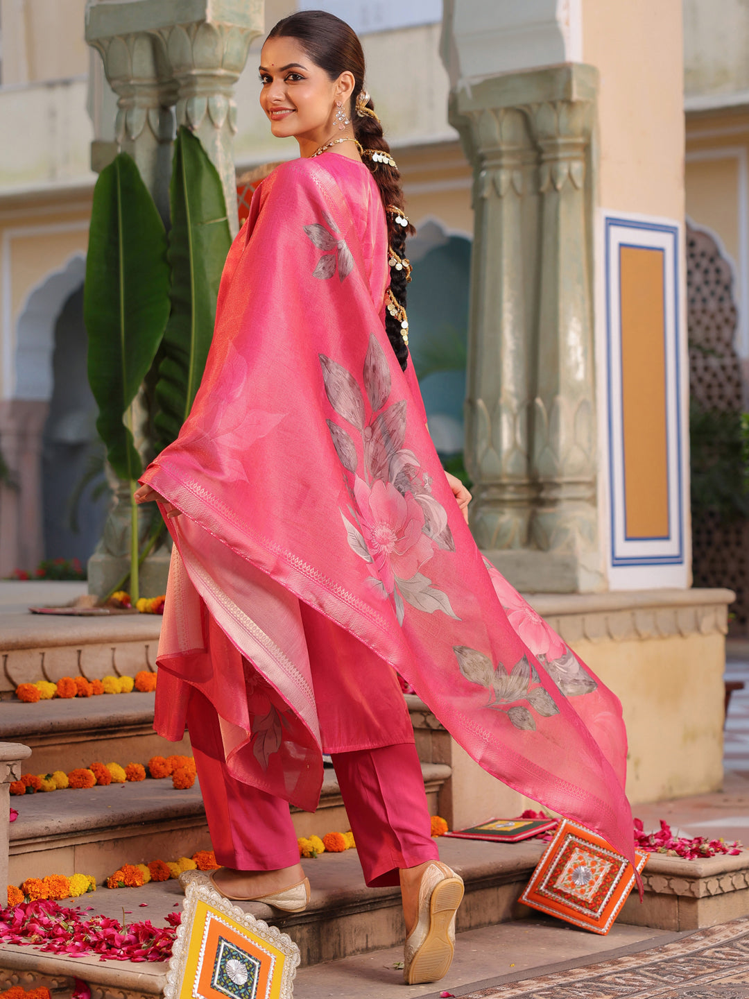Women Floral Printed Regular Thread Work Pure Cotton Kurta with Trousers & With Dupatta