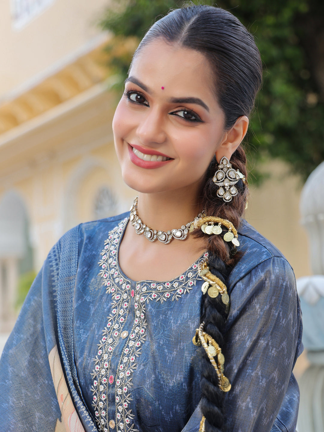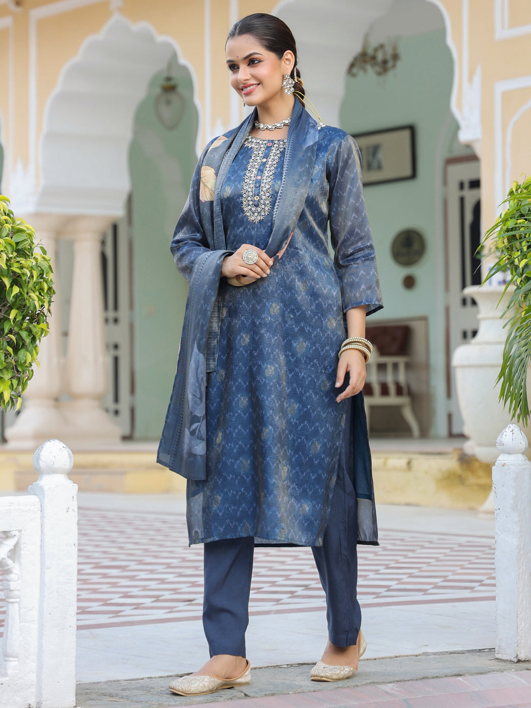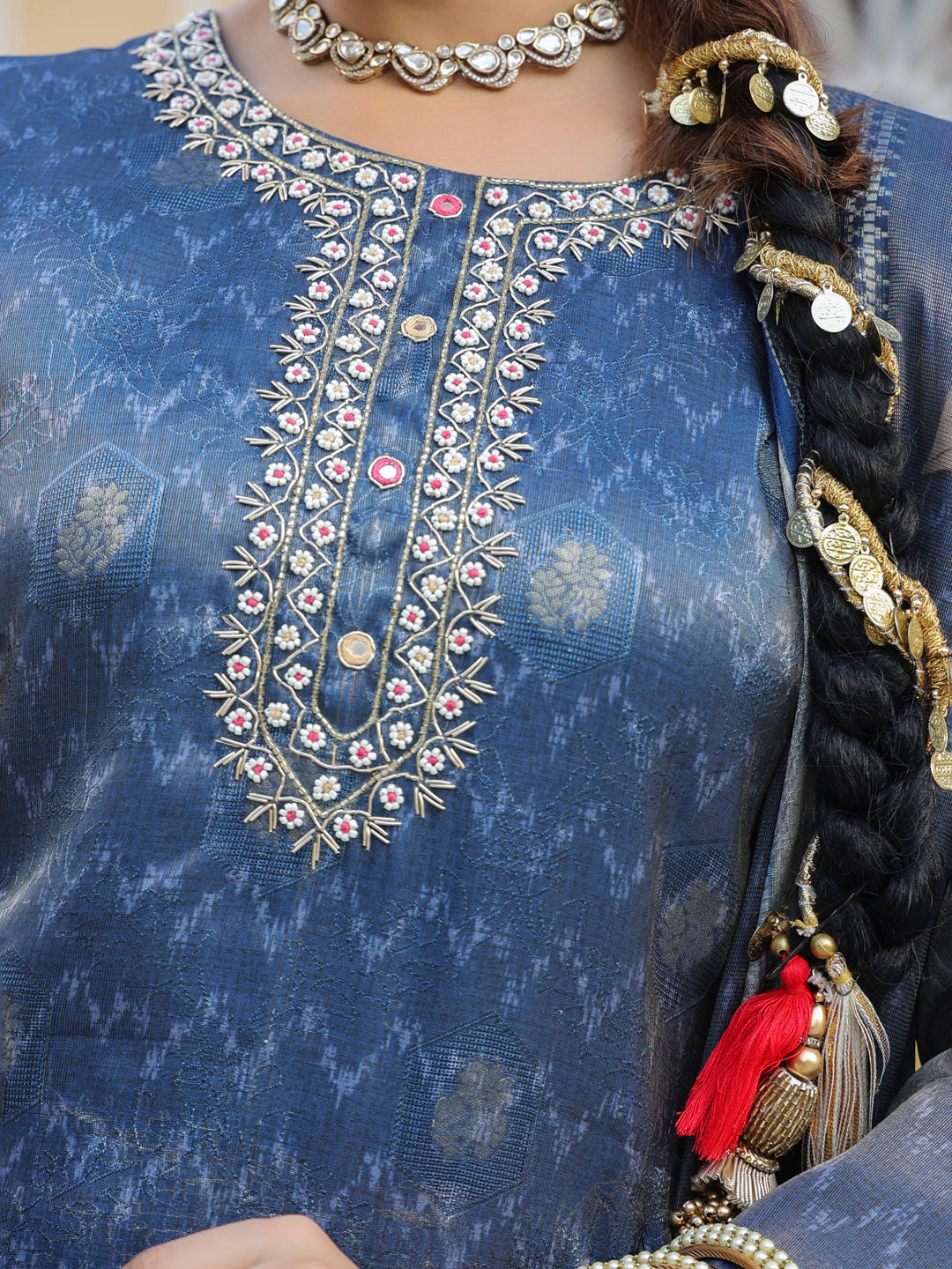 Women Floral Printed Regular Thread Work Pure Cotton Kurta with Trousers & With Dupatta