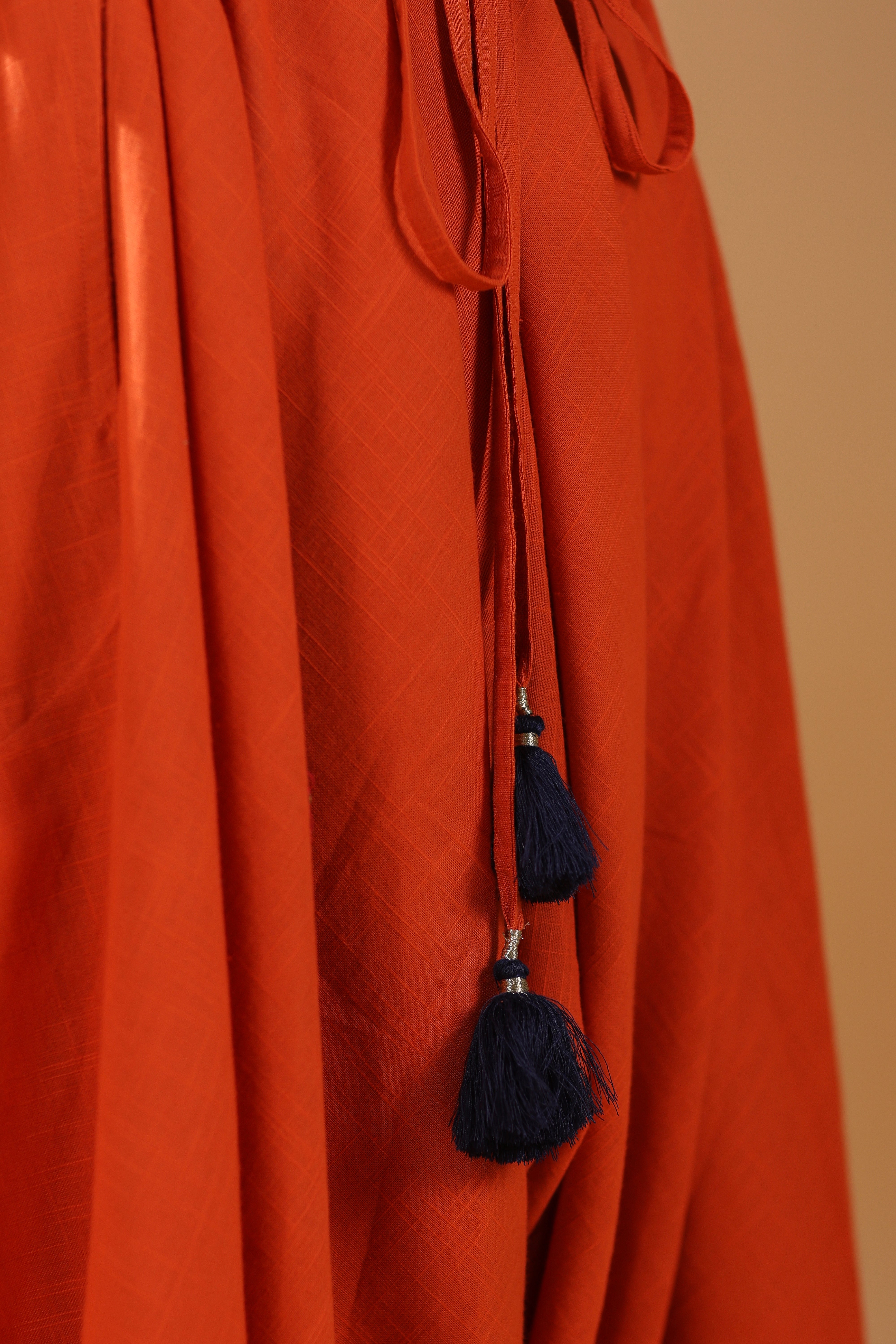This is a rust solid basic jumpsuit with shoulder straps, V-neck sleeveless jumpsuit with 2 pockets.